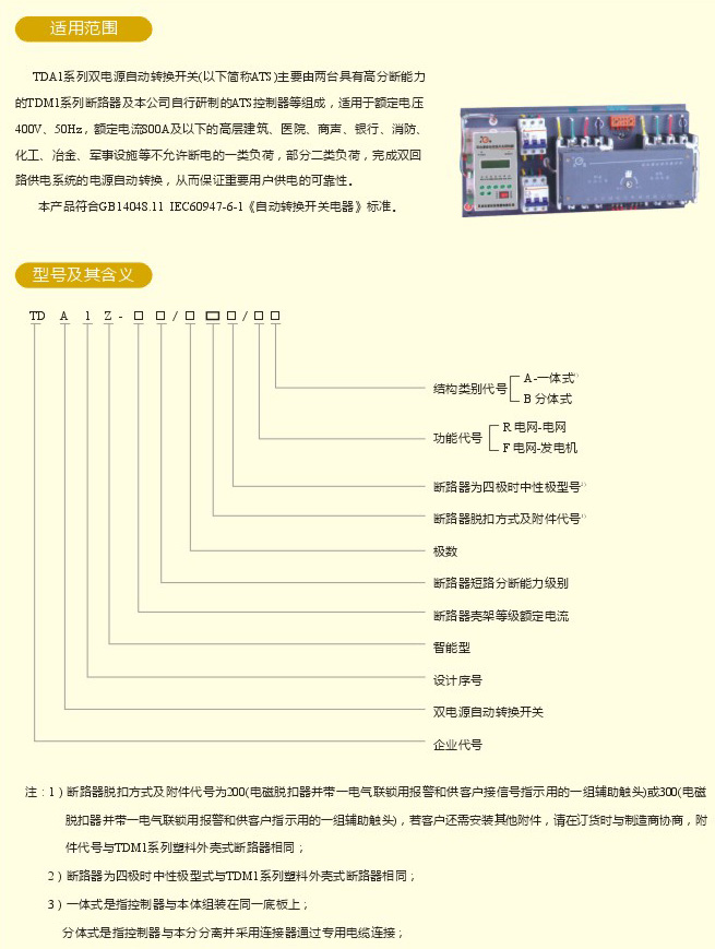 TDA1系列雙電源保護開關(guān)